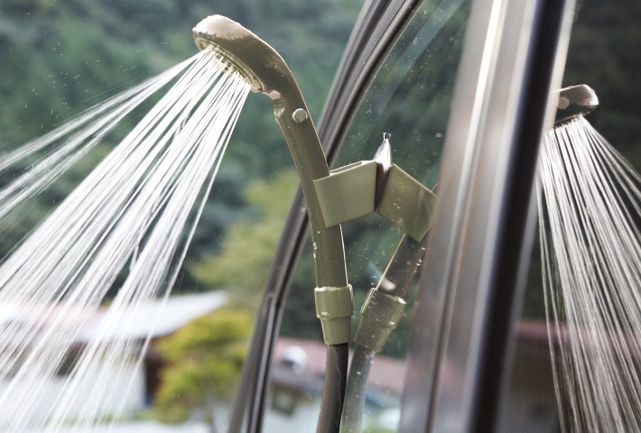 吸盤とS字フックが付属し、2WAYで固定が可能。車の窓などに吸盤で取り付けたり、S字フックに吊るして使用することができます。車のシガーソケットに差し込んで場所問わずどこでも簡単に使うことができるため、海水浴やサーフィン、ちょっとした洗浄などアウトドアで大活躍。