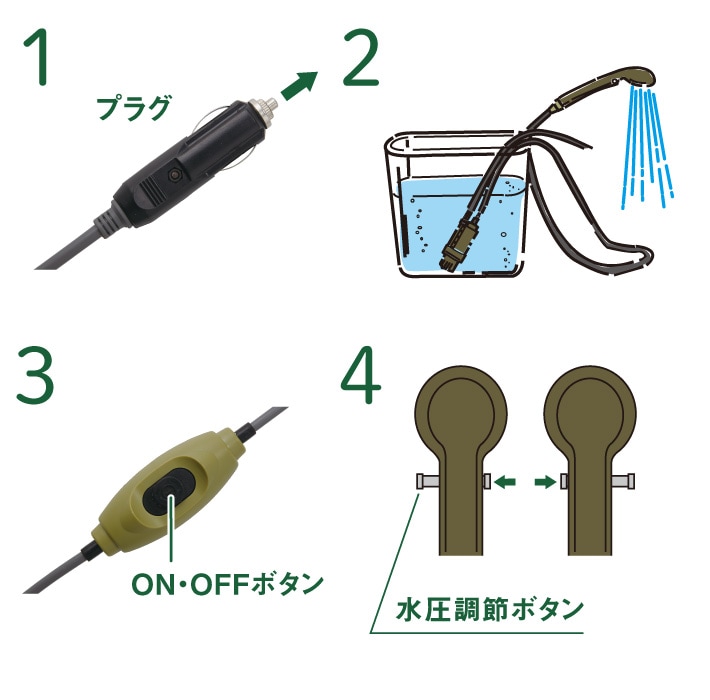 強力パワーのモバイルシャワー(DC電源専用)